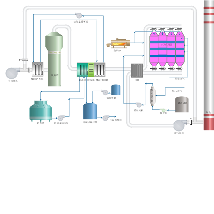 脱硝后的烟气再次进入GGH,将热量传递给刚开始的低温烟气。